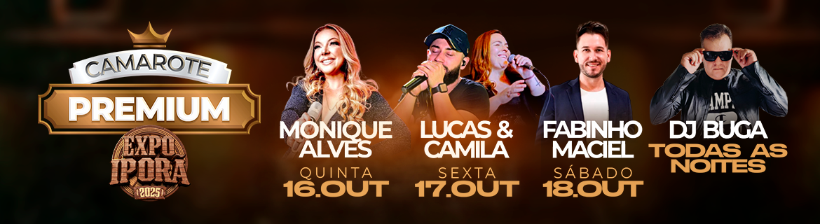 Destaques Inova Ingressos RECINTO DE RODEIO 18/10/2025 EXPO IPORA 2025 RECINTO DE RODEIO 18/10/2025 16.10 ICARO E GILMAR RECINTO DE RODEIO 19/10/2025 17.10 CESAR MENOTTI E FABIANO RECINTO DE RODEIO 19/10/2025 CAMAROTE PREMIUM EXPOIPORA PARQUE DE EXPOSICOES 26/11/2025 26.11 CLAYTON E ROMARIO PARQUE DE EXPOSICOES 27/11/2025 27.11 DANIEL PARQUE DE EXPOSICOES 28/11/2025 28.11 ANA CASTELA PARQUE DE EXPOSICOES 29/11/2025 29.11 MATHEUS E KAUAN CLUBE OLIMPICO DE MARINGA 29/11/2025 BAILE DO HAVAI 2025
